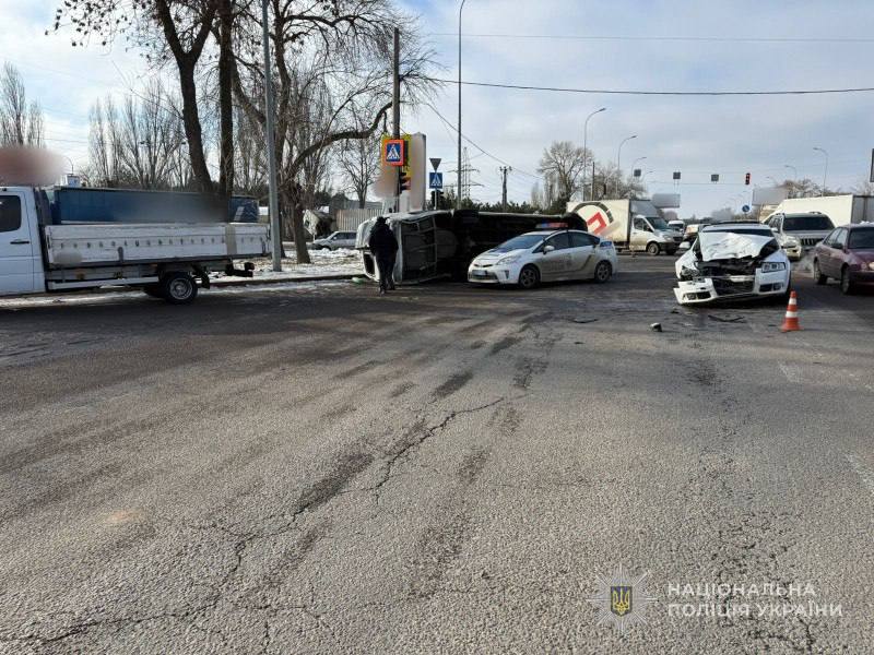 В Одесі внаслідок ДТП перевернувся мікроавтобус: водія доставили до лікарні